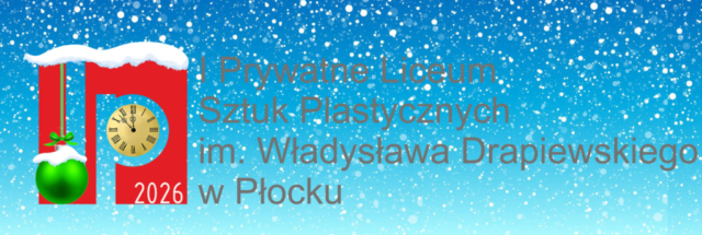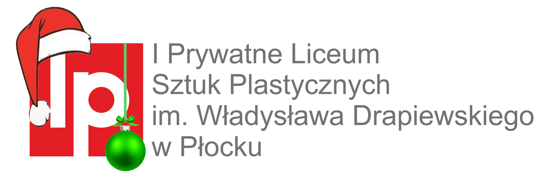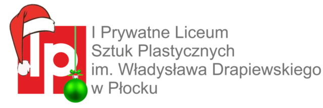 Zdobiące świąteczny layout internetowej strony startowej I Prywatnego Liceum Sztuk Plastycznych im. Władysława Drapiewskiego w Płocku okolicznościowe logo i logotypy wyglądały tak.