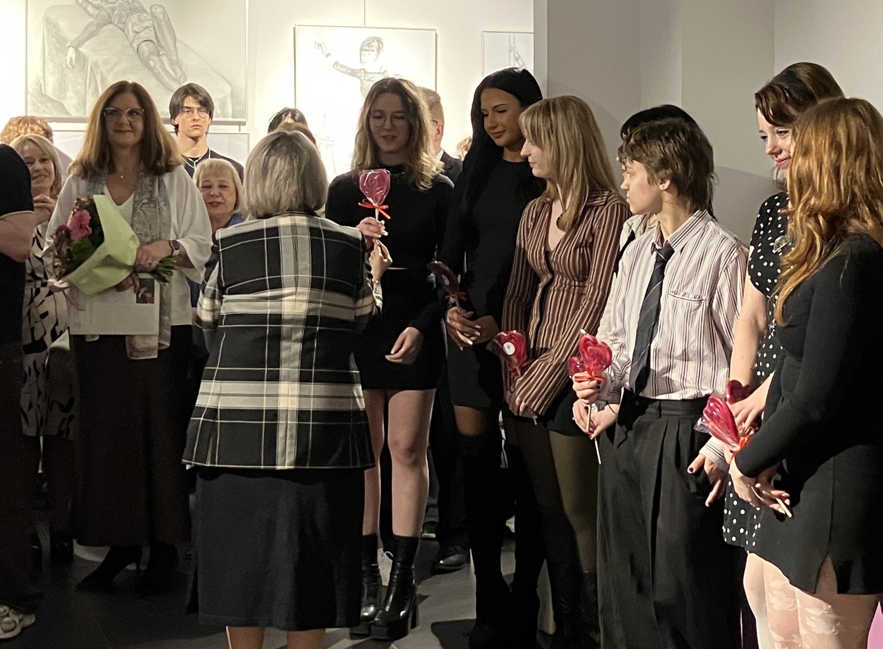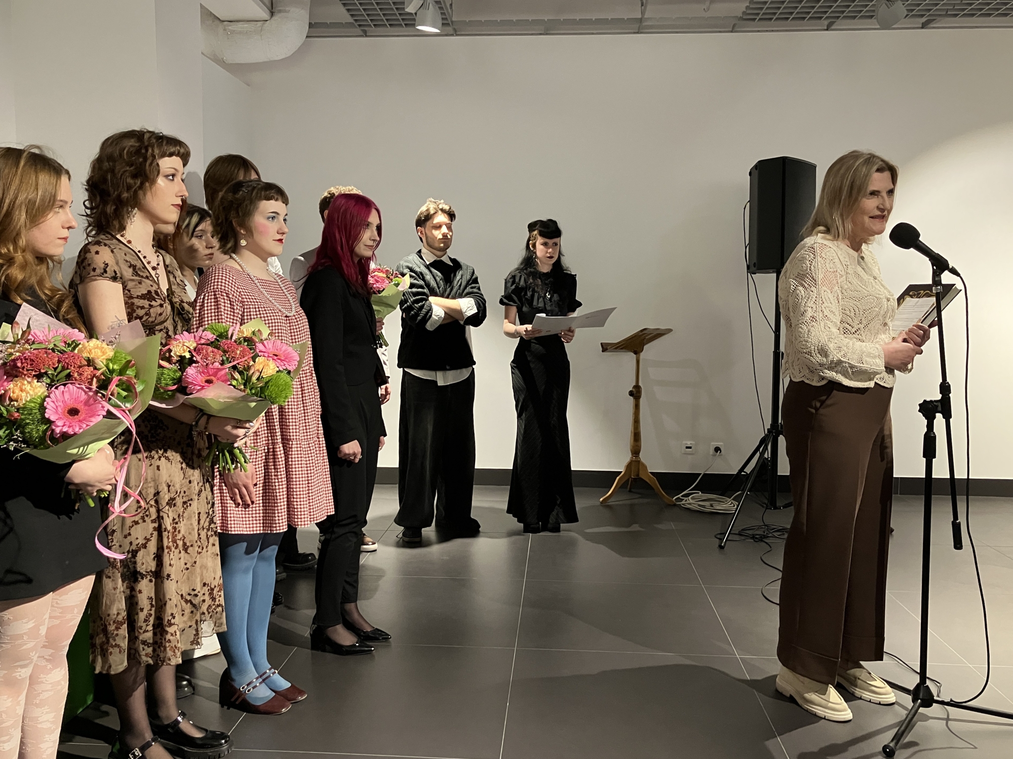 Dyrektor Małgorzata Mroczkowska podkreśliła rozwój wiedzy i umiejętności uczniów w ciągu czterech lat nauki, w szczególności w zakresie tradycyjnych technik malarskich i pozłotniczych (olej, tempera, witraż). Swoim wychowankom gratulacje i życzenia sukcesów złożyła prof. Anna Macionek-Stańko.