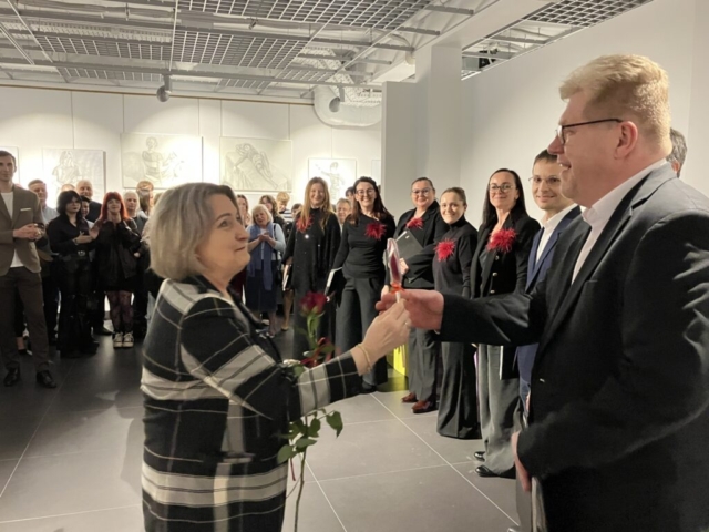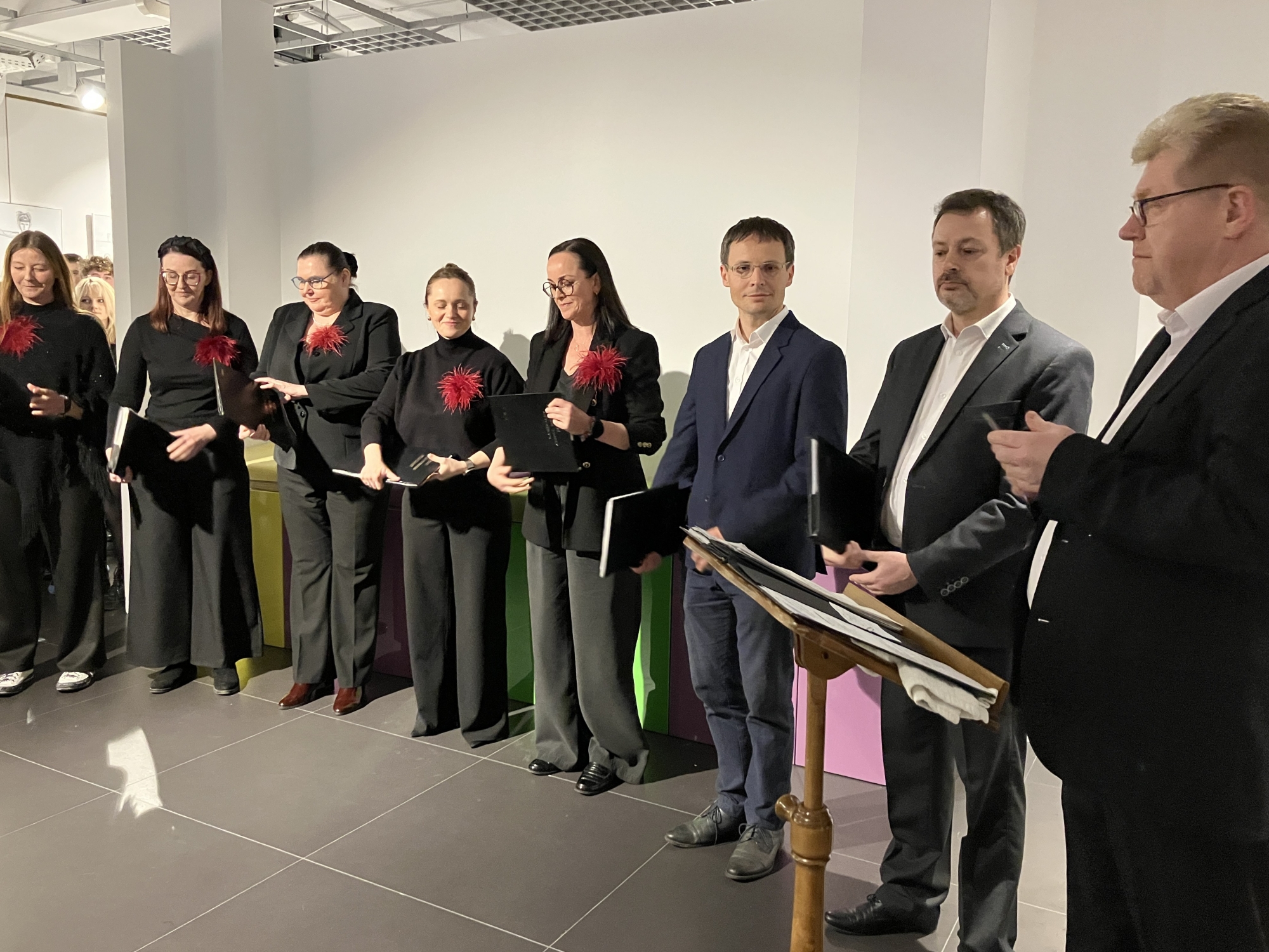 Wernisaż uświetnił występ kameralnego zespołu wokalnego pod batutą prof. Sławomira Gałczyńskiego, dyrygenta Chóru Minstrel Liceum Ogólnokształcącego im. Marszałka Stanisława Małachowskiego.