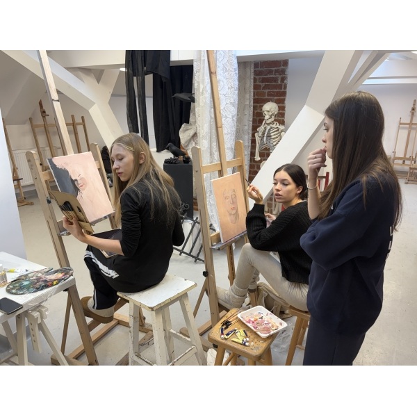 „Tematem najnowszych zajęć w IV A jest portret w technice olejnej na płótnie, realizowany na dwa dowolne sposoby: albo uczniowie malują siebie nawzajem w parach, po czym mogą sobie podarować